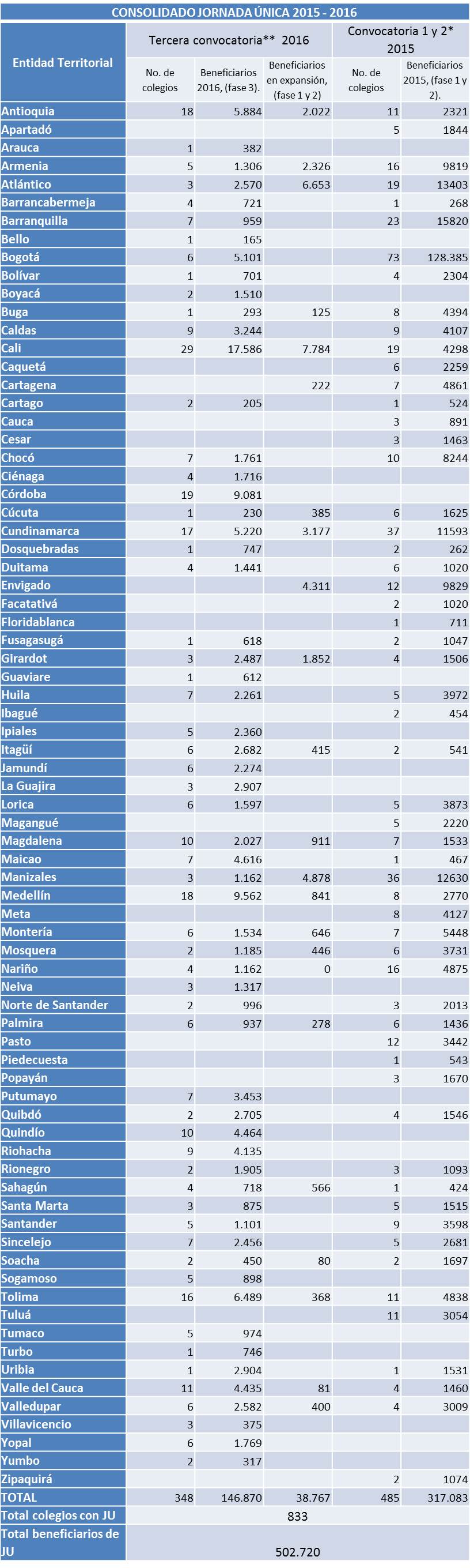 Igualmente, en este link encuentre el listado de los colegios que se sumaron a la Jornada Única.