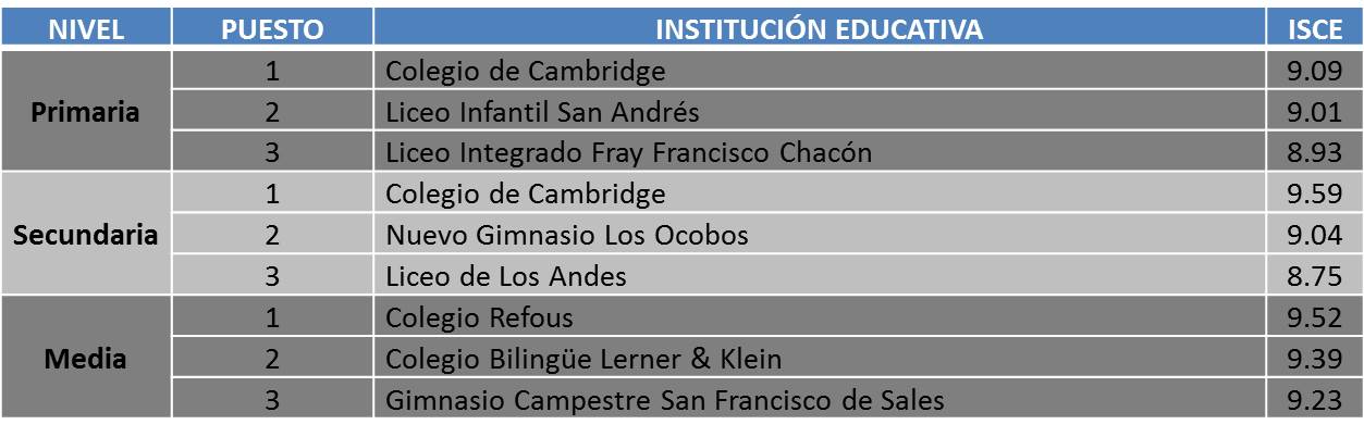 - La jefe de la Cartera Educativa anticipó el listado de los tres mejores colegios en primaria, secundaria y media en el departamento.
