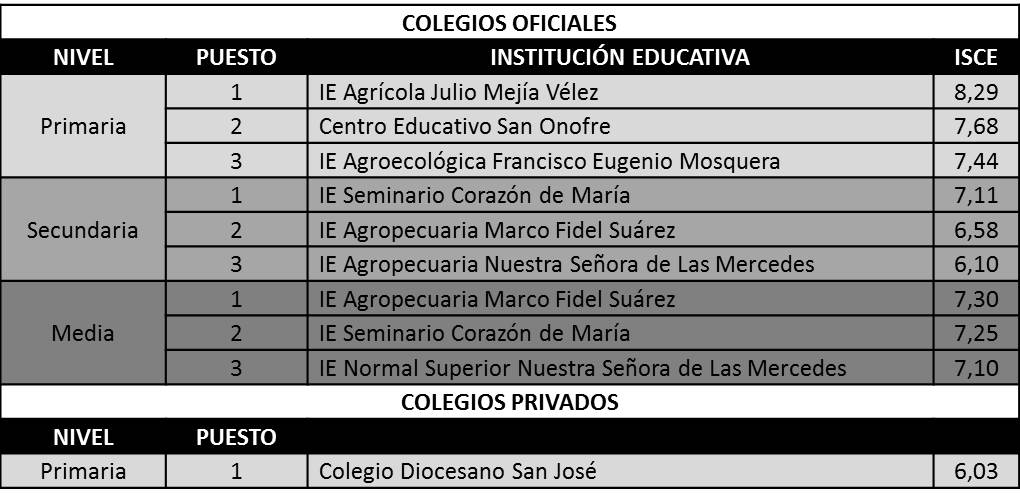 • MEDIA: Para este nivel educativo el departamento mostró una mejoría de 0,35 puntos (ISCE) en comparación con el año anterior, al pasar de 4,01 en 2015 a 4,36 en 2016. Pese a este aumento, el departamento no logró alcanzar la meta de mejoramiento que se estableció en 4,95 para este año.