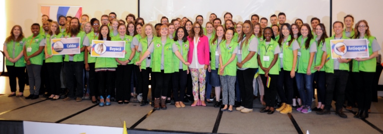 Bogotá D.C., 7 de julio de 2016. Mineducación. La Ministra de Educación Nacional, Gina Parody, recibió al tercer y último grupo de 240 Formadores Nativos Extranjeros, quienes completan 600 voluntarios que hacen parte de la estrategia Colombia Bilingüe, que tiene como finalidad fomentar la enseñanza de este idioma a 176.000 estudiantes bajo el método de coenseñanza, junto a 1.300 docentes de 378 instituciones educativas oficiales de Colombia.