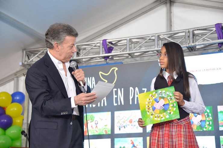 Presidente Santos y MinEducación premian a los 15 ganadores del concurso 'Pinta una Colombia en Paz'