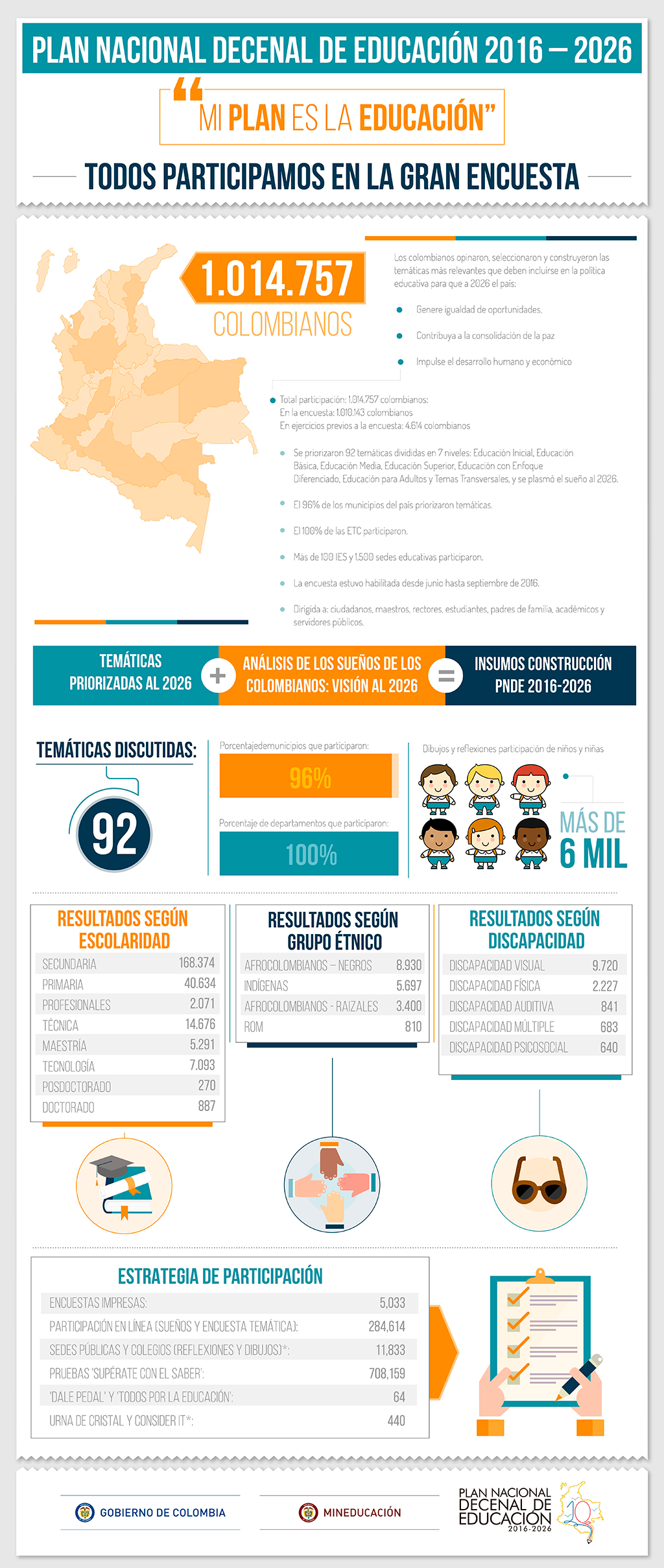 “Este es un plan que se caracteriza por ser incluyente, innovador y participativo. Contó con la contribución de más de un millón de personas, una cifra nunca antes vista en la construcción de una política pública en nuestro país”, dijo la ministra Giha en la presentación del Plan Nacional Decenal de Educación 2016-2026, que se llevó a cabo este miércoles en Bogotá.