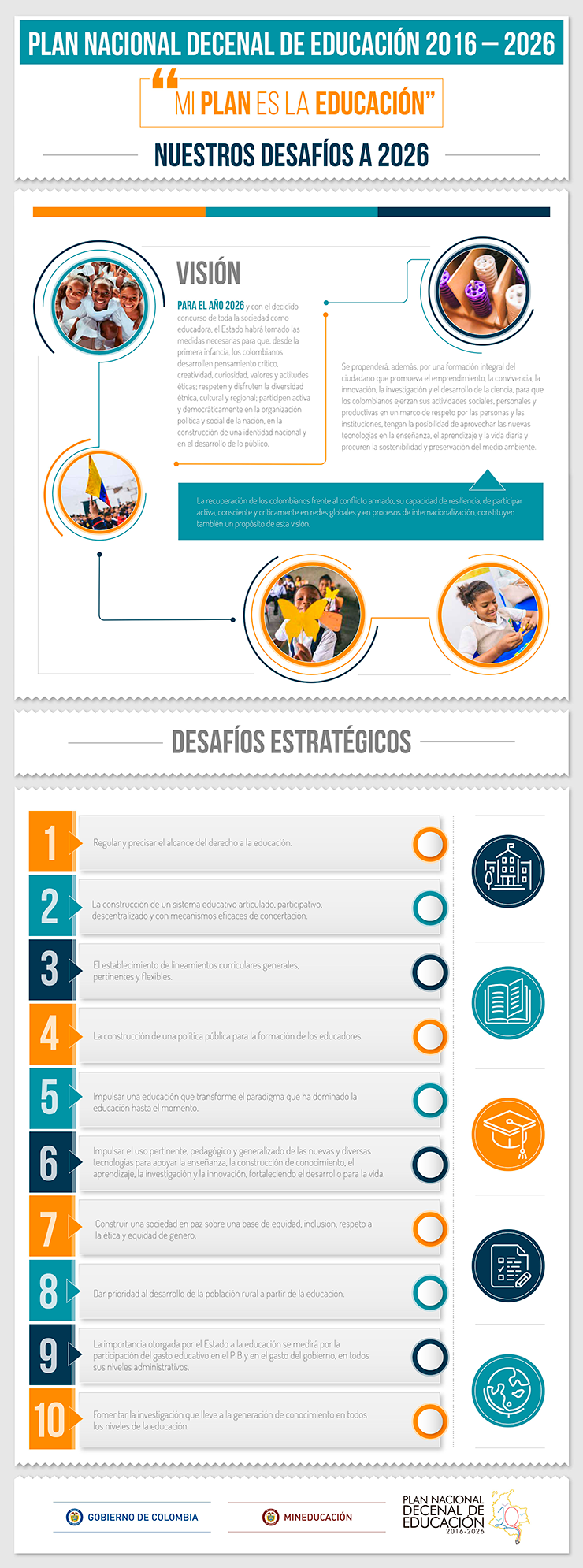 - El documento consigna los 10 desafíos principales que tiene el país para mejorar la calidad de la educación y que esta siga siendo factor fundamental del desarrollo social y económico del país