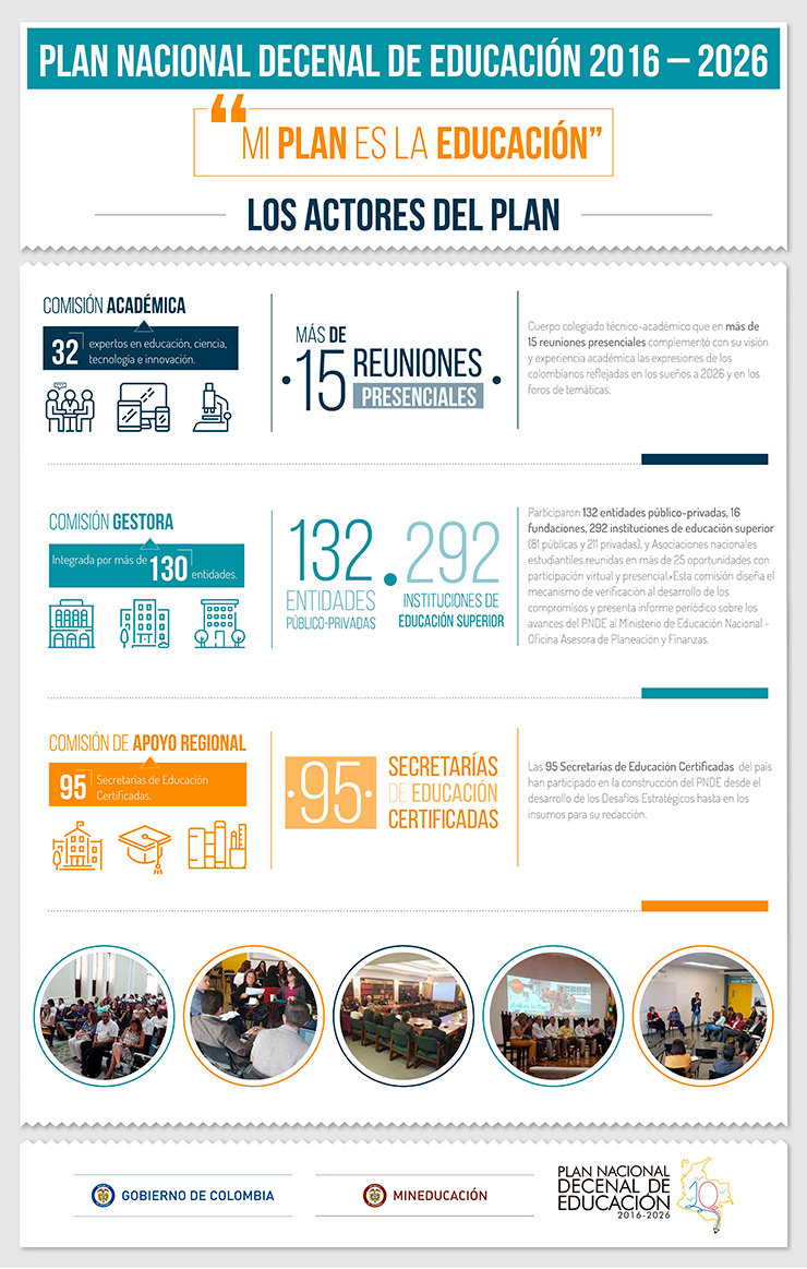 grupo de personas que participaron en la formulacion del plan nacional decenal de educación acompañados de la Ministra de educacion Yaneth GihaLa Ministra informó que en el plan se consignan las acciones concretas que el país debe desarrollar para mejorar la calidad de la educación, en torno a cinco principios orientadores: