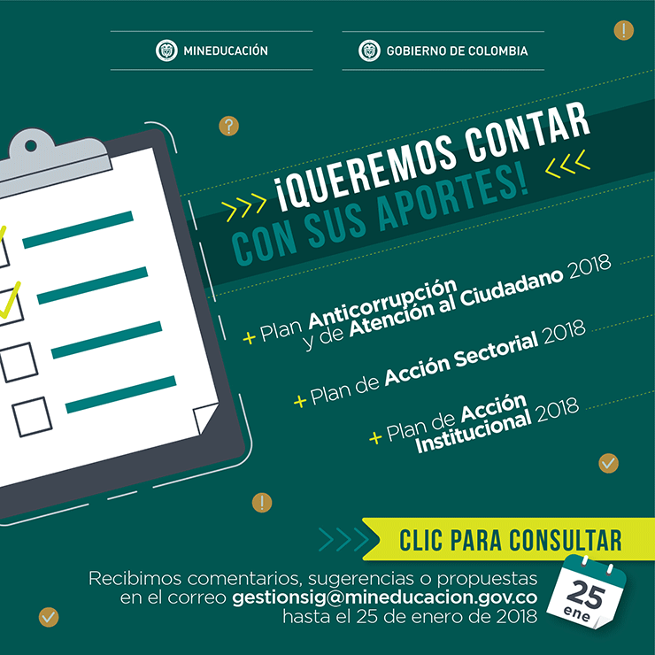 Recibiremos sus comentarios en el correo gestionsig@mineducacion.gov.co, hasta el 25 de enero de 2018.