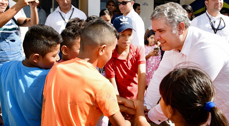 El presidente Iván Duque Márquez, acompañado de la ministra de Educación, María Victoria Angulo, llegó al municipio de La Paz para entregar la nueva sede de la Universidad Nacional y las obras de ampliación de la Institución Educativa San José.