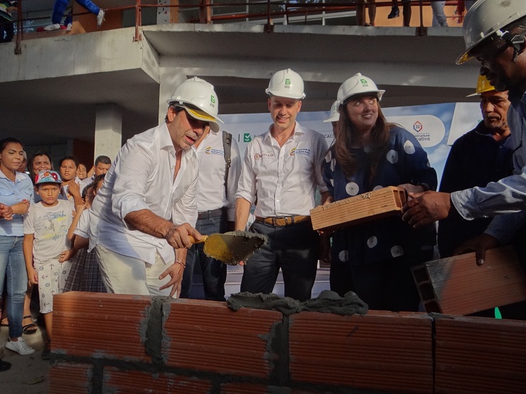 En un acto simbólico desarrollado en la sede actual del colegio, el Viceministro, el Alcalde, la secretaria de Educación, Karen Abudinen, y el rector de la institución, Víctor Goenaga, firmaron este miércoles el compromiso que da marco jurídico para iniciar las obras, instalaron la primera piedra y sembraron un árbol como representación del nacimiento de nuevas oportunidades para más de 1.400 niños y jóvenes que se beneficiarán con estas obras.