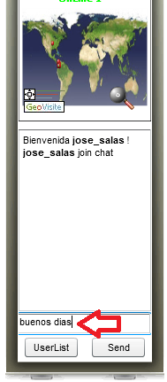Ingrese un nombre de usuario o nickname que no sea tan común como para que ya esté siendo usado por alguien en la sala de chat: ![]() Haga click en la zona marcada: ![]() Participe ingresando sus comentarios en el cuadro de texto. ![]() |