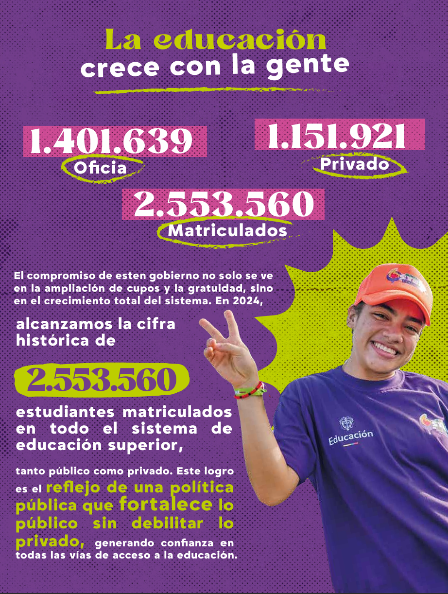 Esta expansión está transformando el mapa de oportunidades en Colombia, llevando el progreso a los departamentos históricamente olvidados. La educación ha dejado de ser un privilegio de las grandes ciudades para convertirse en una realidad en los lugares más olvidados de la nación. La matrícula en departamentos como Vaupés, Amazonas y Vichada ha tenido los aumentos más significativos entre 2023 y 2024, lo que convierte a la educación en una herramienta poderosa para el cierre de brechas de equidad en el territorio y demuestra que el futuro se construye desde las regiones