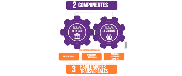 En donde los dos componentes y los tres habilitadores deben estar engranados para generar valor en el estado, apoyados a través de las diferentes herramientas dispuestas por el Ministerio de Tecnologías de Información y Comunicaciones por medio de la dirección de Gobierno Digital.