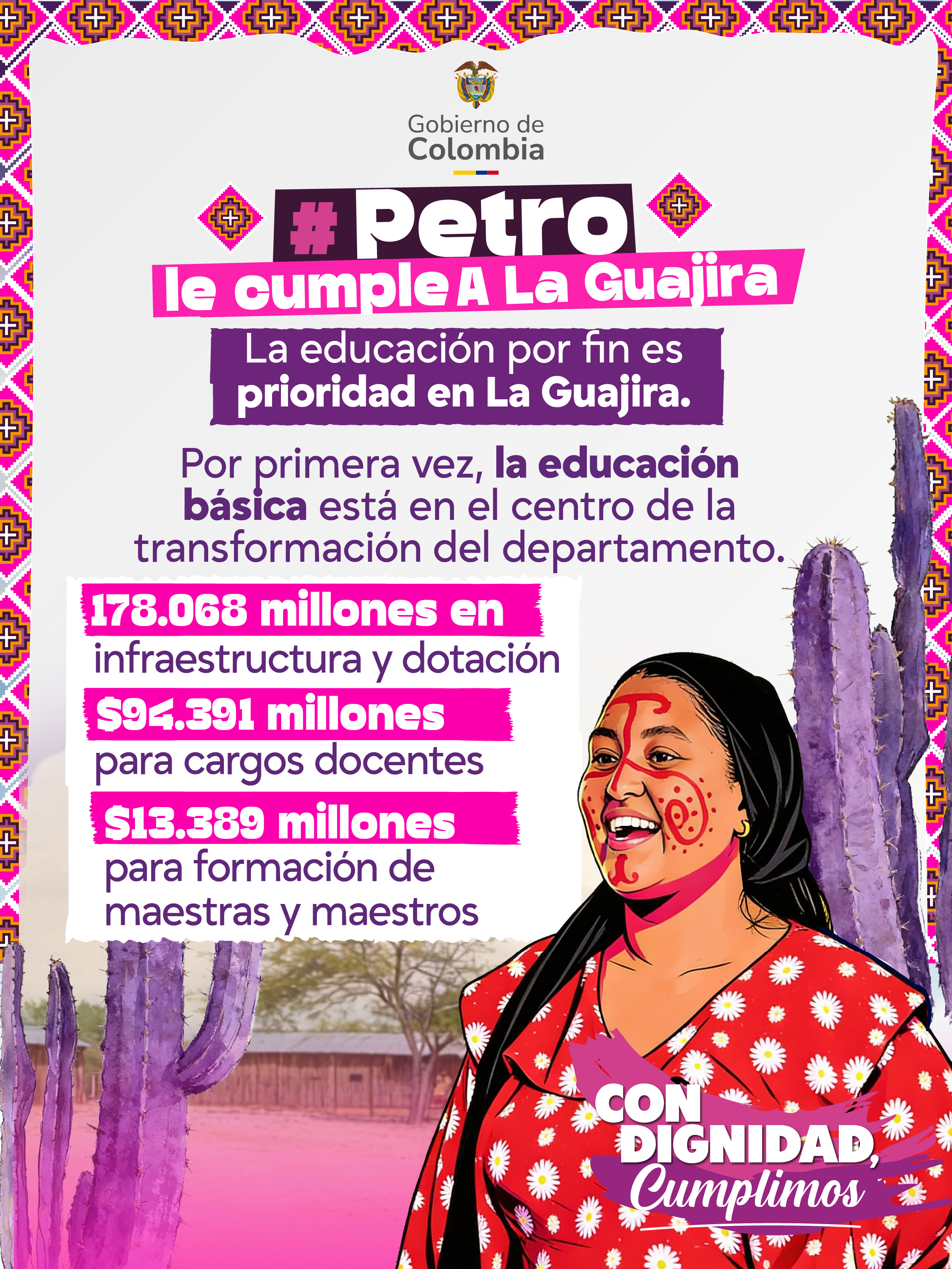 La educación preescolar, básica y media en La Guajira dejó de ser una promesa y se convirtió en una prioridad presupuestal y territorial, con un aumento histórico de los recursos para garantizar el derecho de niñas, niños y jóvenes en todo el departamento.
