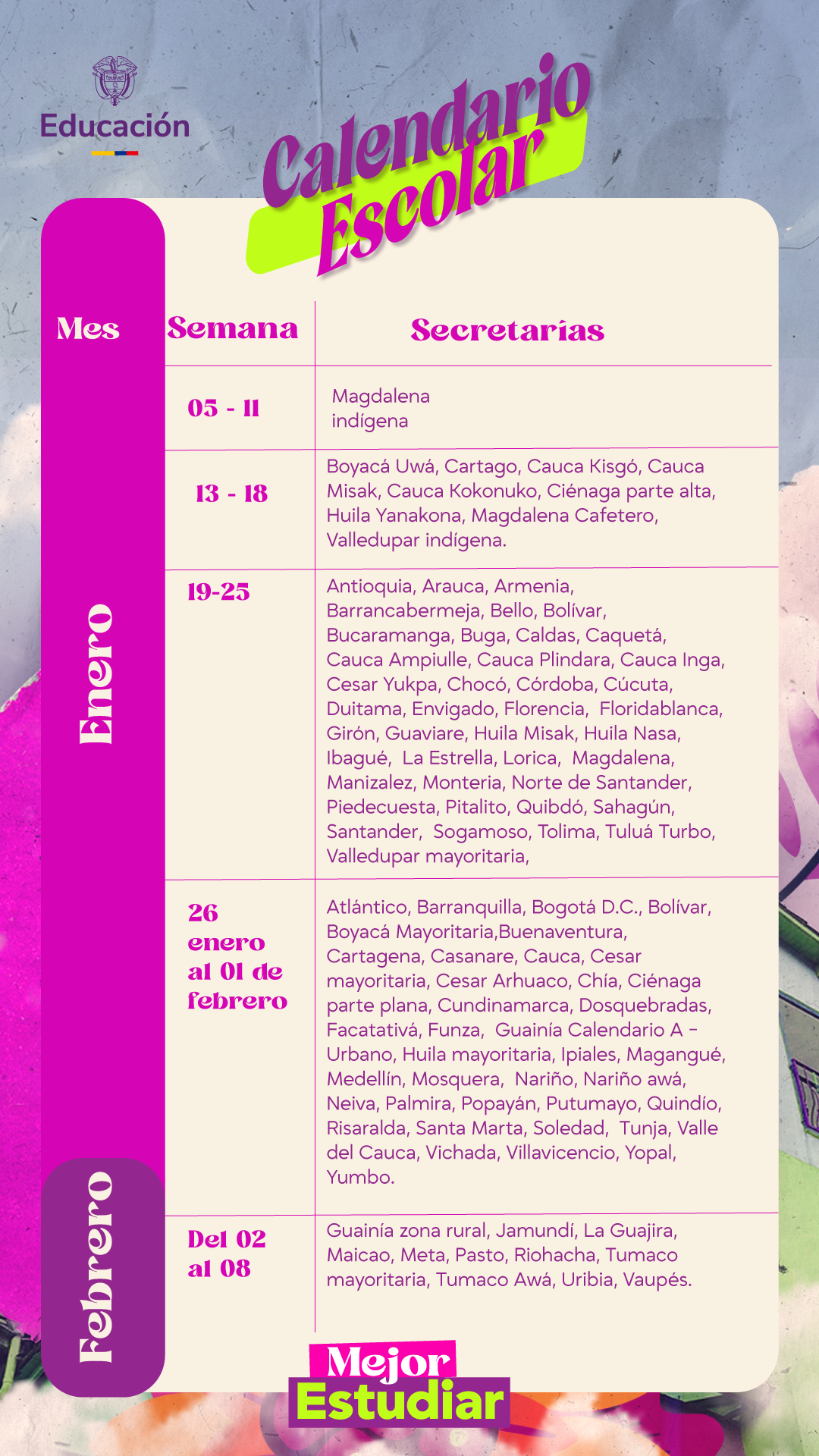 El Ministerio de Educación Nacional emite orientaciones a las Secretarías de Educación Certificadas para la elaboración del calendario académico de 2026, con el propósito de promover una planeación oportuna, flexible y coherente del servicio educativo en todo el país.