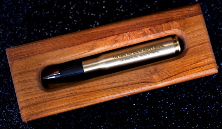 En el marco de la firma del acuerdo que pone fin al conflicto armado en Colombia, el Presidente entregó al líder de las Farc el símbolo de la trasformación de un país en guerra a un país en paz: El Balígrafo