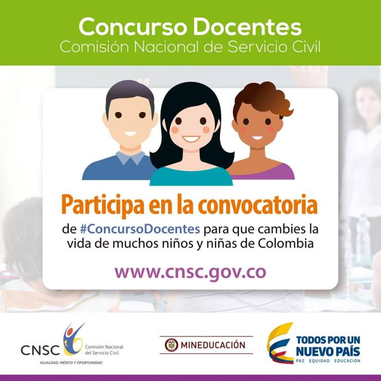 Bogotá D.C., 16 de agosto de 2016. Mineducación - CNSC. Queremos que los docentes más brillantes sean los encargados de educar a la generación de la paz. Por ello el Ministerio de Educación y la Comisión Nacional del Servicio Civil (CNSC) hacen un llamado a todos los colombianos que quieran vincularse a la carrera docente y cambiar la vida de miles de niños en las aulas de clase, para que se presenten a esta convocatoria.