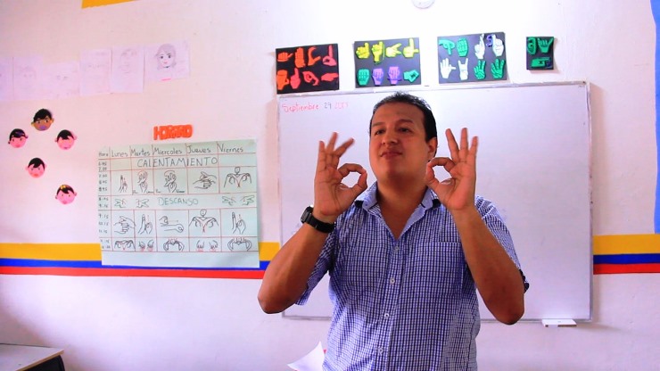 Él, quien también es sordo, además les imparte los contenidos para cada grado y les enseña sobre valores, convivencia y respeto por las diferencias.