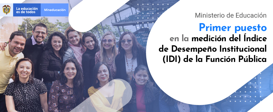 Bogotá, D.C. mayo 13 de 2022. Con un puntaje de 99,8 el Ministerio de Educación Nacional obtuvo nuevamente, y por cuarto año consecutivo, el primer puesto entre los 18 ministerios del Gobierno Nacional y otras entidades del Estado en el Índice de Desempeño Institucional (IDI) 2021, del Departamento Administrativo de la Función Pública - DAFP, y alcanzó, igualmente, el primer puesto como sector, con las entidades adscritas y vinculadas que participan en la medición anual, incrementando el resultado de 93,3 a 95,8 puntos.