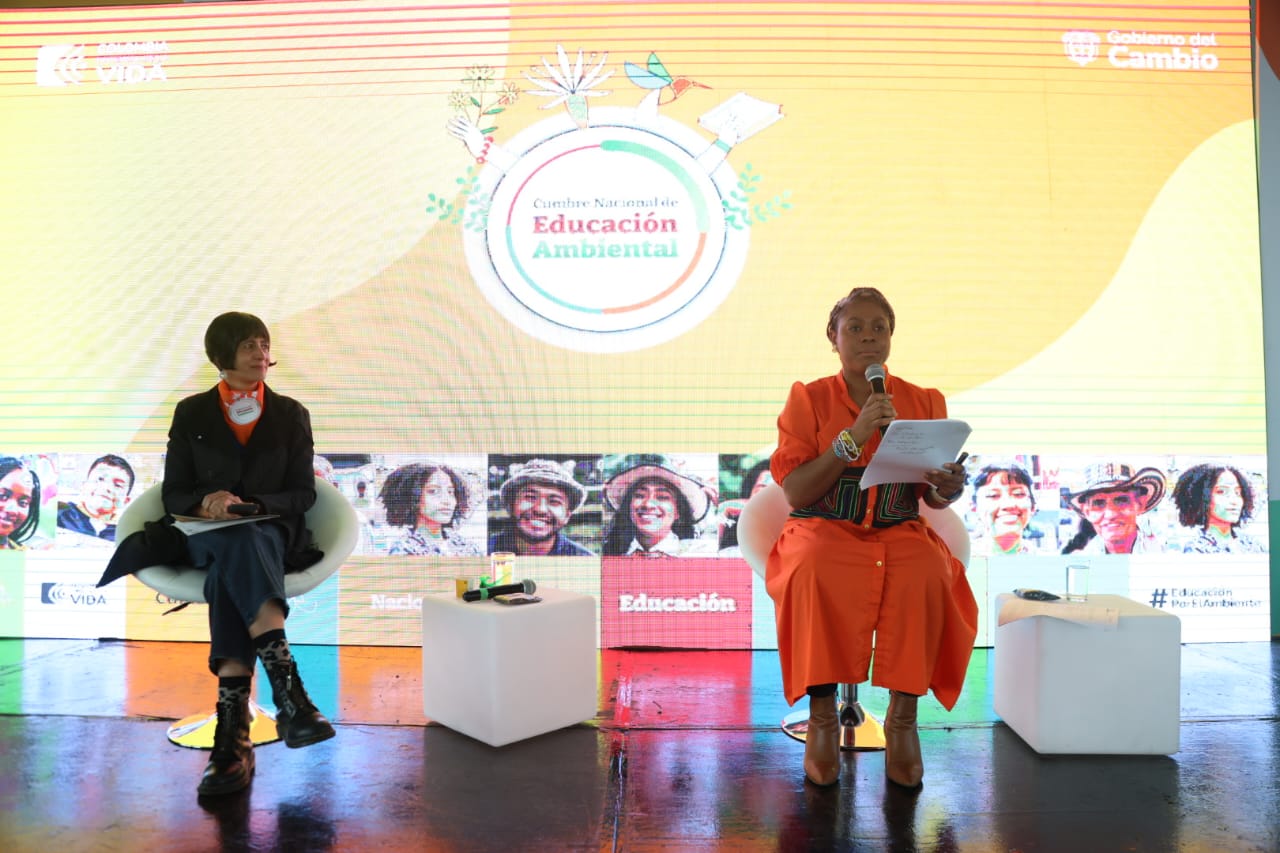 Bogotá D.C., 25 de noviembre de 2023. Las ministras de Educación y Ambiente, Aurora Vergara Figueroa y Susana Muhamad, instalaron la Cumbre Nacional de Educación Ambiental 2023, que se realiza en la Universidad Nacional de Colombia hasta el 26 de noviembre.