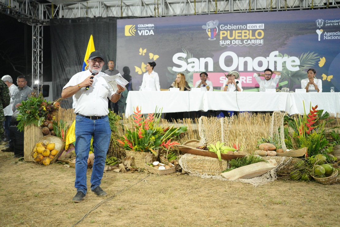 San Onofre (Sucre), 22 de marzo de 2024. En la jornada por la paz y por la vida de la estrategia nacional "Gobierno con el Pueblo" realizada en San Onofre, Sucre, el viceministro de Educación Superior, Alejandro Álvarez Gallego, entregó un balance de las inversiones que se tienen previstas para mejorar las condiciones educativas del sur del Caribe colombiano.