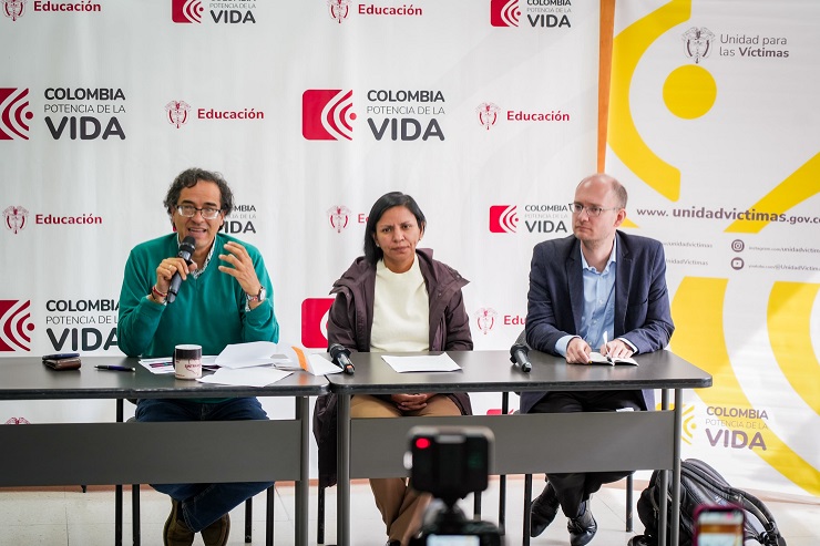 Bogotá D.C., 2 de abril de 2024. En el marco de la conmemoración del 9 de abril, Día Nacional de la Memoria y Solidaridad con las Víctimas del Conflicto Armado; la Unidad para las Víctimas, el Ministerio de Educación Nacional, Educapaz y el Instituto Colombo-Alemán para la Paz (CAPAZ) lanzaron la estrategia: 'La educación abraza a las víctimas del conflicto armado', fecha que tendrá acciones de movilización social que dignifiquen la lucha y reconozcan sus aportes en la consolidación de la paz, entendiendo el rol de la escuela como un escenario de construcción de memoria, convivencia y reconciliación.