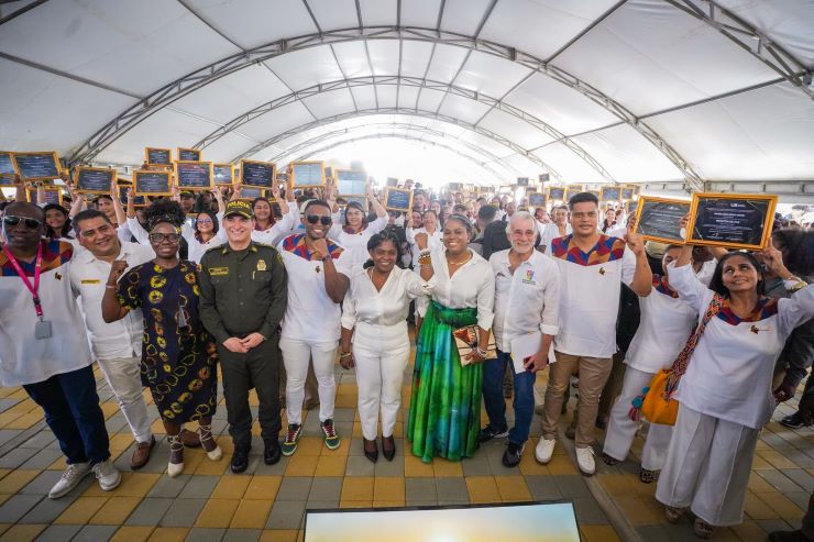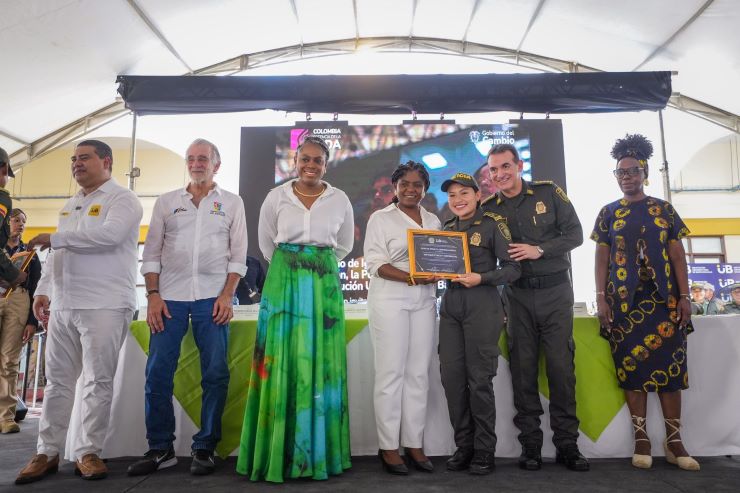 Barranquilla, (Atlántico), 2 de junio de 2024. Durante el lanzamiento del Laboratorio de Paz, Convivencia y Seguridad Humana 2.0 de la Policía Nacional de Colombia, la ministra de Educación Nacional, Aurora Vergara Figueroa, en compañía de la vicepresidenta, Francia Márquez Mina; el gobernador del Atlántico, Eduardo Verano de la Rosa, y el director de la Policía Nacional, William Salamanca, anunció el ingreso de más de mil estudiantes a la educación superior, gracias a la nueva Política de Gratuidad 'Puedo Estudiar' del Gobierno Nacional, en articulación con el programa local, Universidad al Barrio.