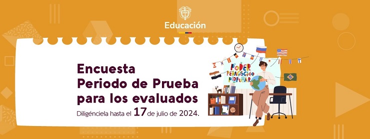 Por lo cual, hasta el próximo miércoles 17 de julio de 2024 estarán habilitadas las encuestas diseñadas para recoger esta información. En ese sentido, los invitamos a ingresar a la página web del Ministerio de Educación en este enlace: Evaluación del período de prueba | Ministerio de Educación Nacional (mineducacion.gov.co)