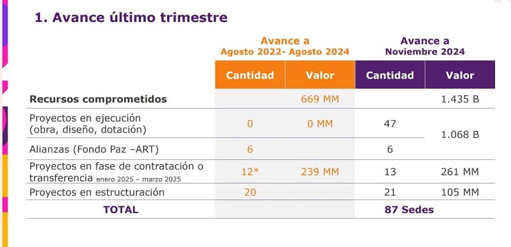 87 proyectos de infraestructura y dotación financiados y en avance, fortaleciendo la calidad y la cobertura educativa.