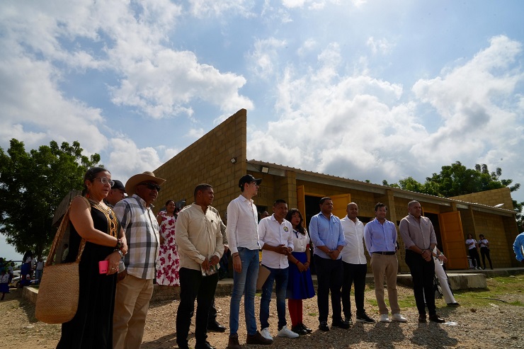 En el municipio de Riohacha, se inauguró la Institución Etnoeducativa No.24 sede Jose Francisco Pushaina, un proyecto realizado en alianza con la Fundación Pies Descalzos. Este nuevo espacio incluye cuatro aulas, baterías sanitarias, un comedor y una cocina, proporcionando condiciones esenciales para un aprendizaje digno y de calidad. Valor de la obra: $1.152.469.930.