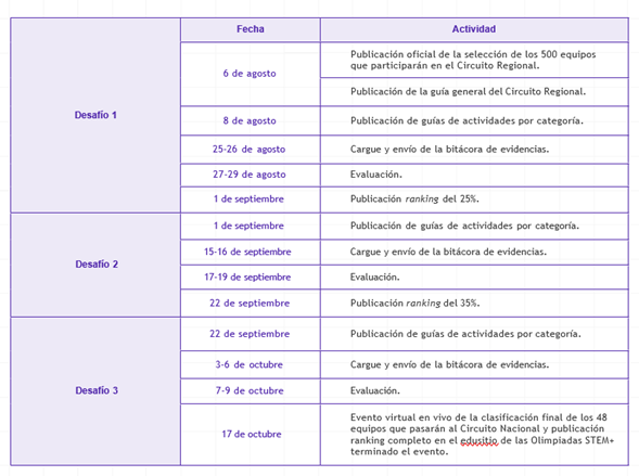 Conoce las fechas clave de esta etapa y las guías del Desafío 1: