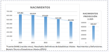 Uno de los principales factores es la reducción de la natalidad. Así, el DANE reportó que en 2024 se registraron 453.901 nacimientos, una reducción del 12,0% frente a 2023 y un 31,3% menos en comparación con 2015. ¿Esto qué significa? Una disminución progresiva en el número de estudiantes en edad escolar.