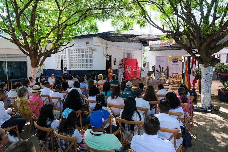 Foto de personas participando en el evento del lanzamiento de la estrategia En Barú, mi reto es aprender más"La Fundación Santo Domingo cree en la innovación financiera como vehículo para ampliar el impacto social y generar soluciones con evidencia y sostenibilidad. Por esta razón, impulsamos la alianza OFFER y movilizamos recursos para que más actores se unan a este enfoque de medición y pago por resultados. Con OFFER fortaleceremos y construiremos oportunidades reales para las niñas, niños y jóvenes de Barú, articulando esfuerzos entre la comunidad, el colegio y los aliados", señaló Álvaro González, director territorial de Cartagena de la Fundación Santo Domingo.