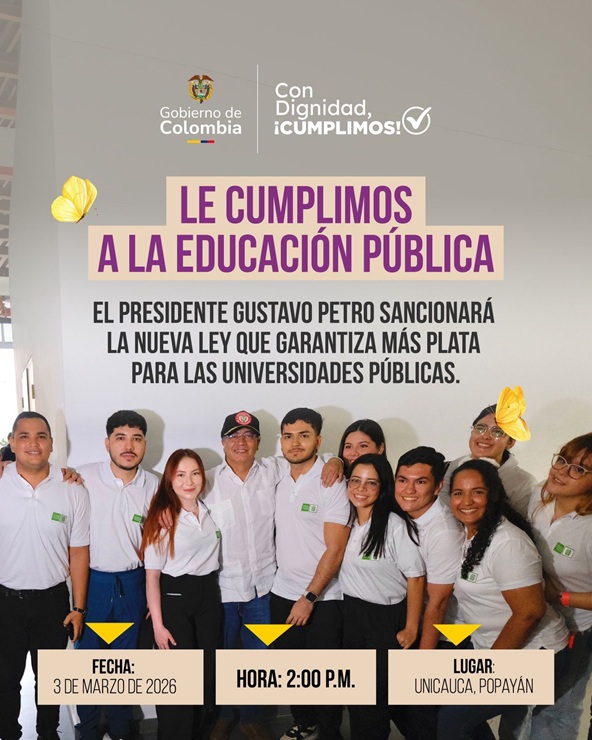 Desde el Centro Deportivo Universitario CDU - El Tulcán de la Universidad del Cauca, en Popayán, hoy 3 de marzo, el presidente Gustavo Petro sancionará la ley que reforma los artículos 86 y 87 de la Ley 30 de 1992, una decisión que cambia para siempre la forma como se financian las instituciones de educación superior (IES) públicas.