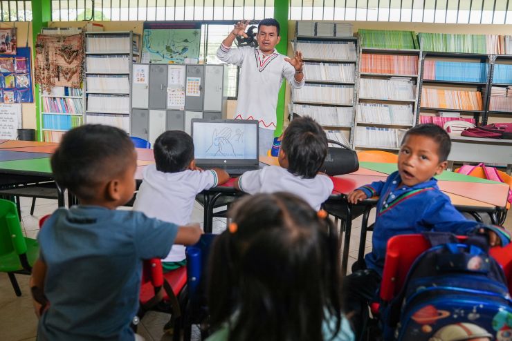 "Desde entonces, los niños empiezan a mencionar palabras del idioma propio. En las casas casi no se habla, pero acá les damos unas bases, palabras básicas, para que no tengan miedo a pronunciar su propia lengua", cuenta Otilia Siquigua, dinamizadora pedagógica de la Institución Educativa Rural, San Marcelino en San Miguel, Putumayo.