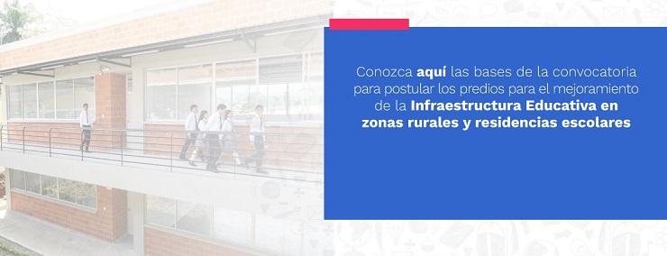 El Ministerio de Educación Nacional, mediante la Resolución No. 5944 del 7 junio de 2019, abrió convocatoria a las entidades territoriales para que postulen las instituciones educativas rurales y residencias escolares, con el fin de obtener recursos para el mejoramiento de su infraestructura escolar.