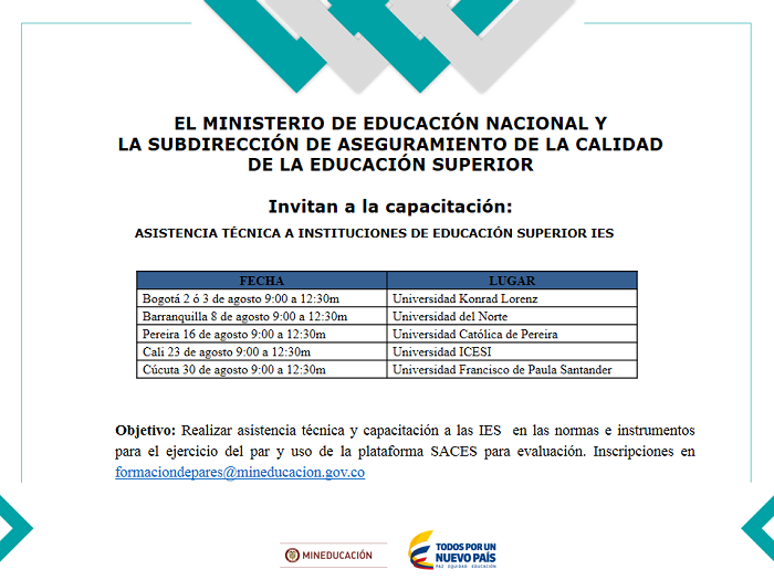PROCESO, ASEGURAMIENTO, CALIDAD, EDUCACIÓN, SUPERIOR, ASISTENCIA, TÉCNICA, IES, SACES